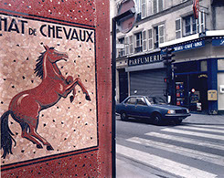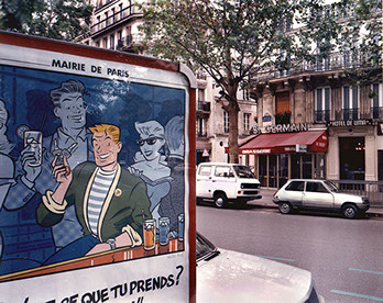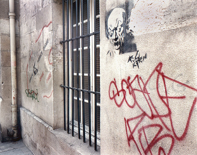 Paris is one of those fascinating and energizing major European cities with sights everywhere that delights the eye of a photographer. While there on sabbatical leave I brought with me an 8x10 field camera to photograph in color the contrasts I was finding between the classical architecture and the raw wall posters and billboards and graffiti that reflect a more contemporary and lively Paris.